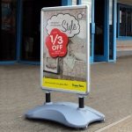 We supply a wide range of Pavement Signs from a simple Budget A-Board to Swinging panel systems. Our most popular pavement signs are the Swinger range due to their weighted base and swinging panel which prevents them from blowing over in the wind.