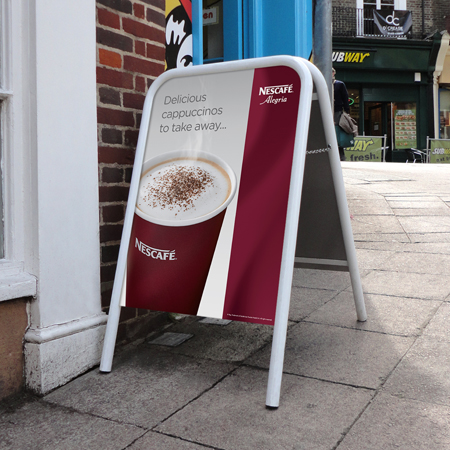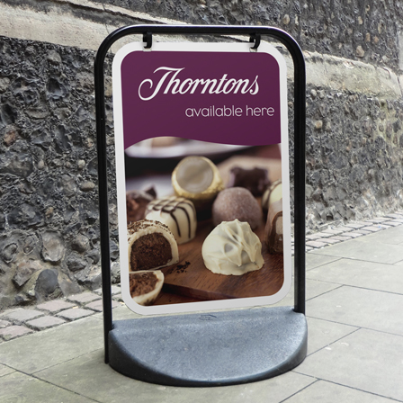 Our most popular pavement sign which comes in a standard panel option or a magnetic changeable poster option. Available with a black or white frame.
